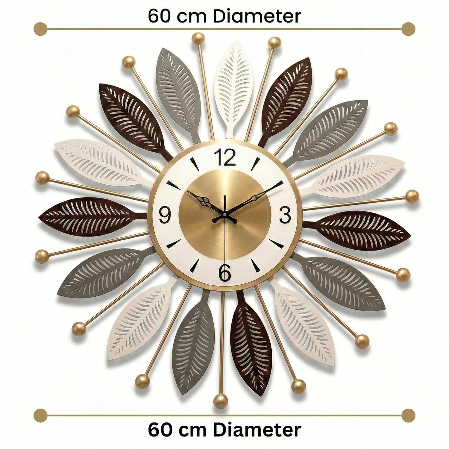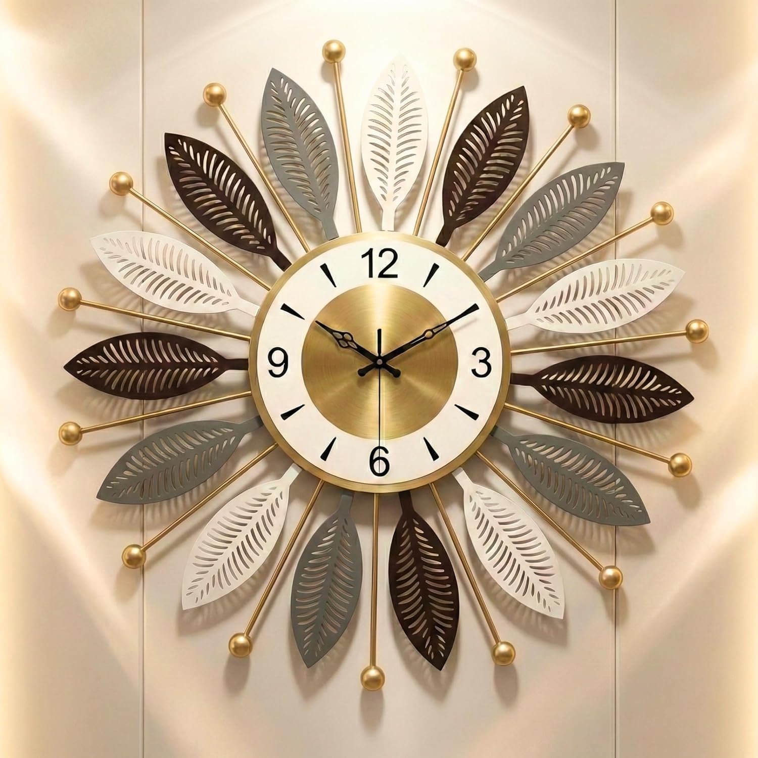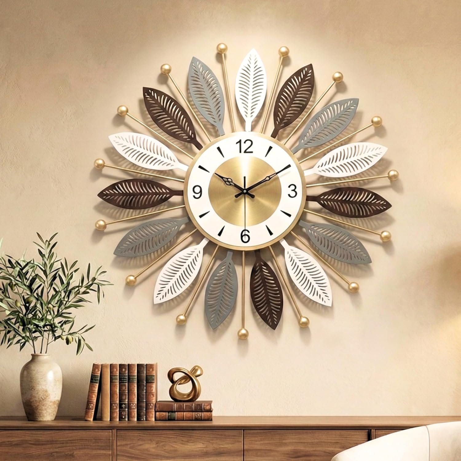 Elevate your interior style with the Luxury Designer Decorative Metal Wall Clock — an exquisite fusion of art, craftsmanship, and functionality. Designed to be more than just a timekeeper, this wall clock features a non-ticking silent sweep analog movement that ensures peaceful operation in bedrooms, living rooms, and offices. The elegant gold-tone metal frame and decorative ginkgo leaf motifs in rich blue and gold hues bring a luxurious, artistic charm to contemporary and classic décor alike.