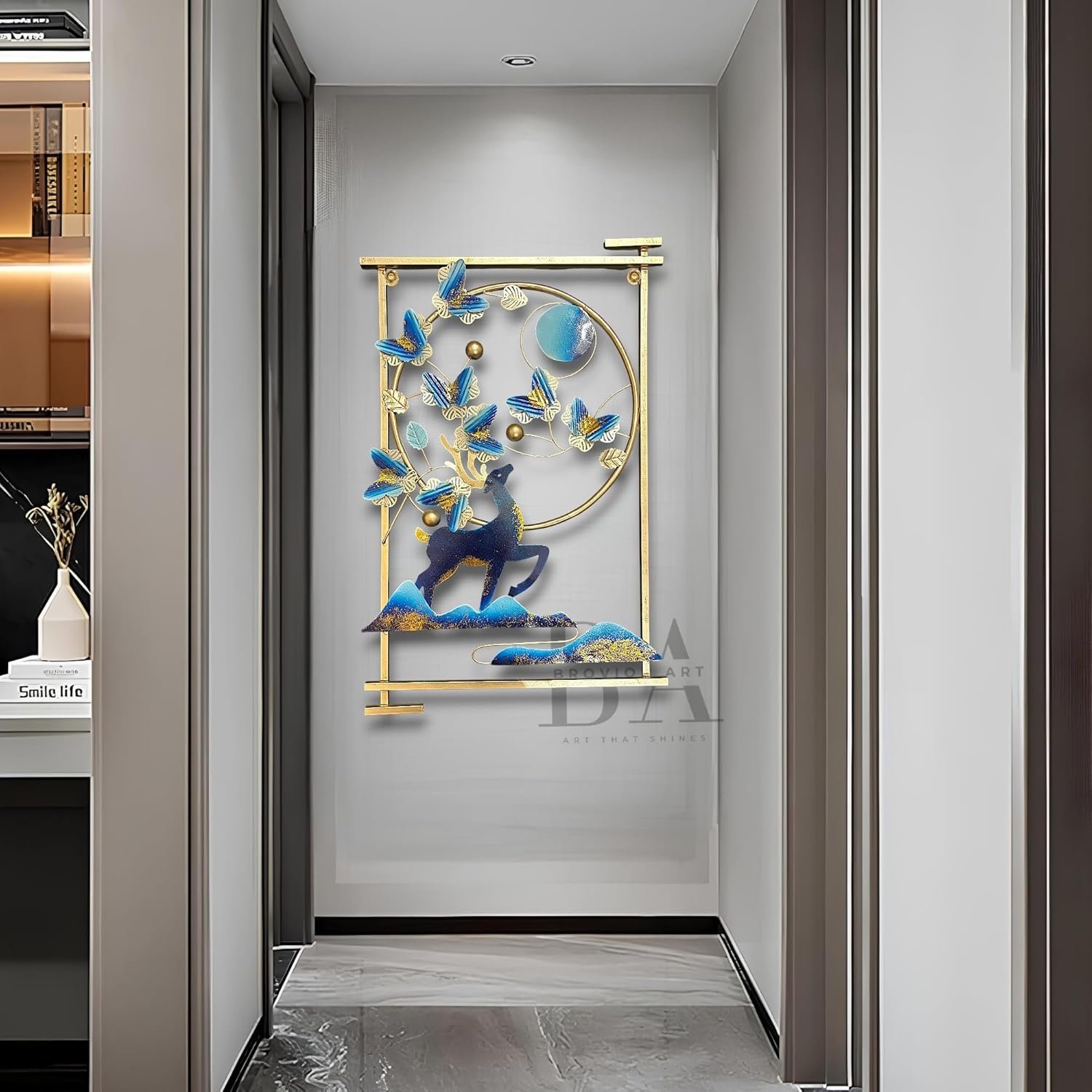 The balanced combination of metallic elements and textured surfaces creates a luxury wall accent that complements modern, minimalist, industrial, and contemporary interiors.
