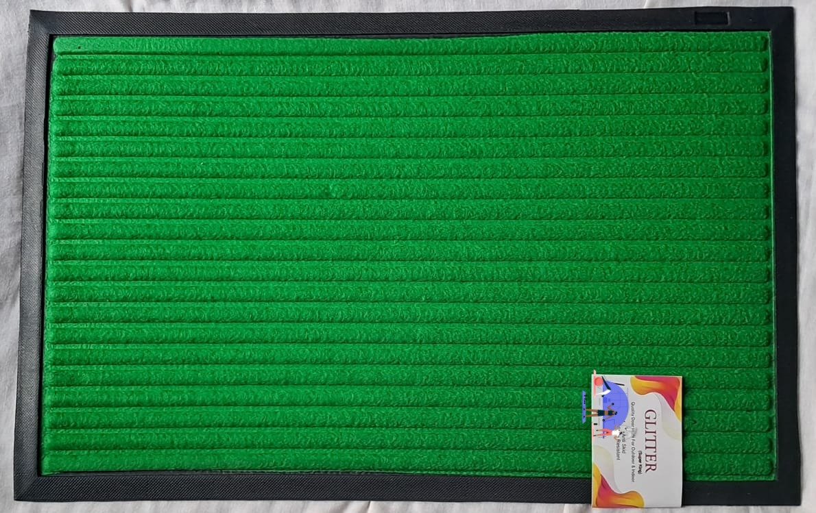 Keep your home clean and stylish with the Glitter Premium Green Floor Mat. Crafted with high-quality polyester fabric and a non-slip rubber backing, this mat effectively absorbs dust, dirt, and moisture from footwear.
